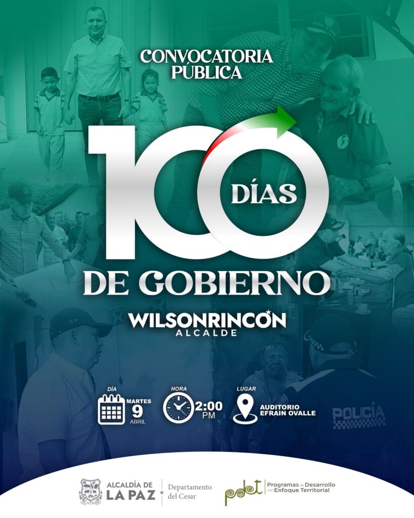 LaPazCesar A medida que nos acercamos al hito de los primeros 100 días de gobierno, es crucial reflexionar sobre el progreso, los desafíos y las oportunidades que hemos enfrentado juntos como sociedad. Con el espíritu de transparencia y responsabilidad, extendemos una cordial invitación a todos ustedes para unirse a nosotros en la rendición de cuentas.